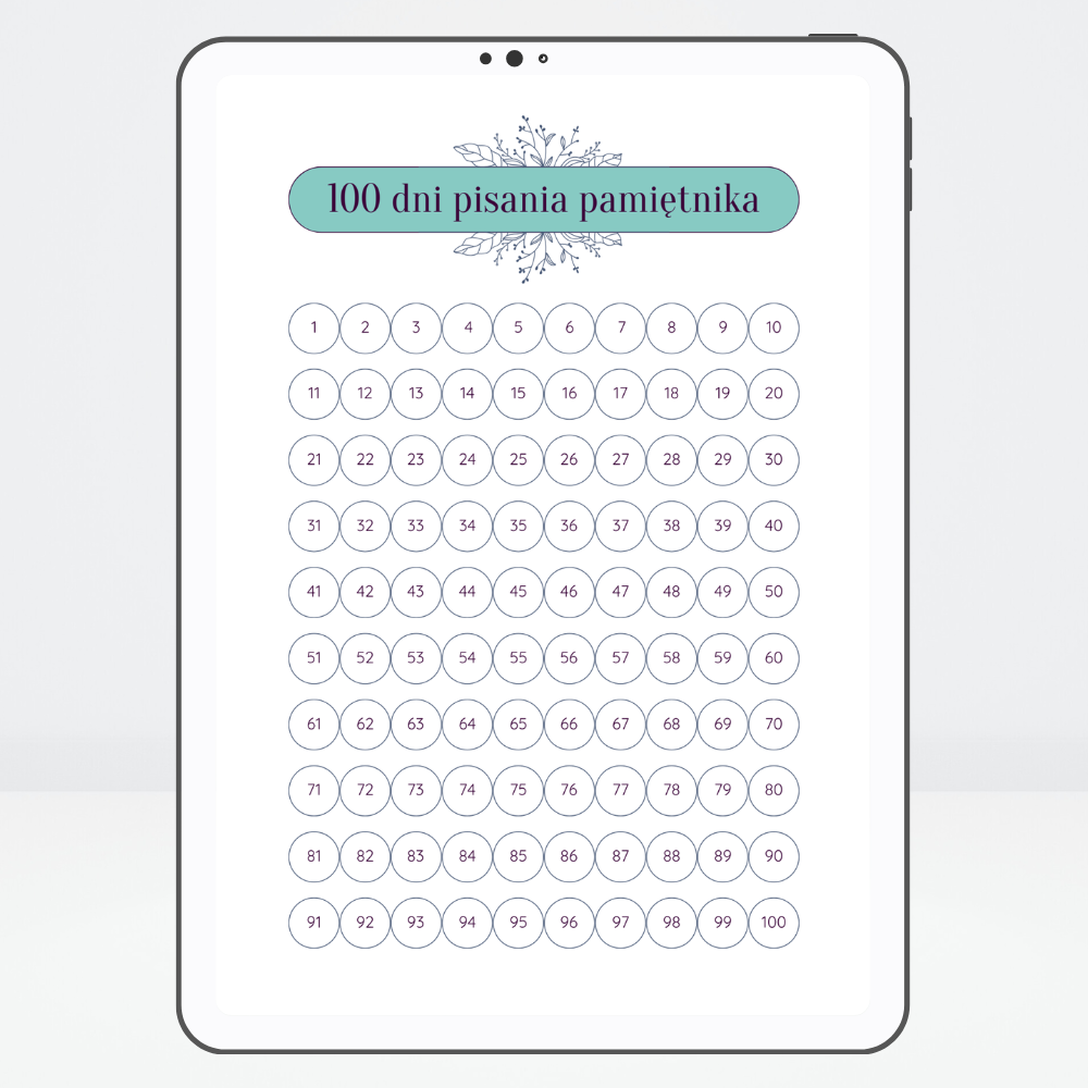 habit tracker na 100 dni (w wersji do samodzielnego wydruku), z którym możesz śledzić postępy w wypełnianiu zadań,